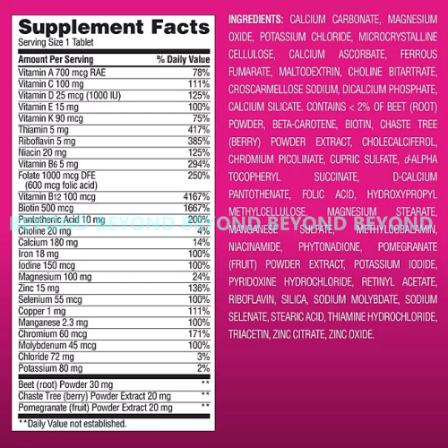 - Women's multivitamin contains 29 vitamins, minerals, and herbs
