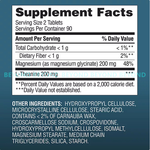 - One 180 count bottle of Magnesium Glycinate with L-Theanine Tablets
