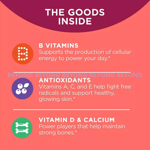 This women's multivitamin blend is comprehensive and tailored to support various aspects of your health. It features B Vitamins for energy support, Vitamin D and calcium for bone health, and Vitamins A, C, & E for overall wellness. These chewable daily vitamins are a powerful blend designed to help fill the nutritional gaps when your eating habits are a little less than perfect.