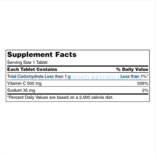 Sorbitol, Sodium Ascorbate, Ascorbic Acid, Corn Starch, Magnesium Stearate, Natural Orange Flavor, Silicon Dioxide, Sucralose, Orange Juice Powder, Maltodextrin, Lactose, Annatto Extract (color), Potassium Hydroxide.