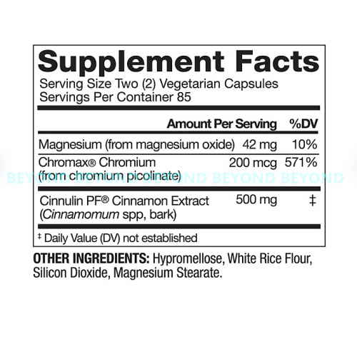 - 500mg Clinical Strength Cinnamon per softgel. Plus magnesium and Chromax Chromium.