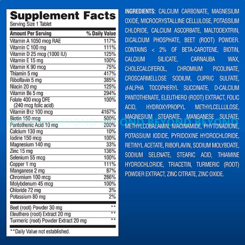 - One 275 count bottle of multivitamin tablets